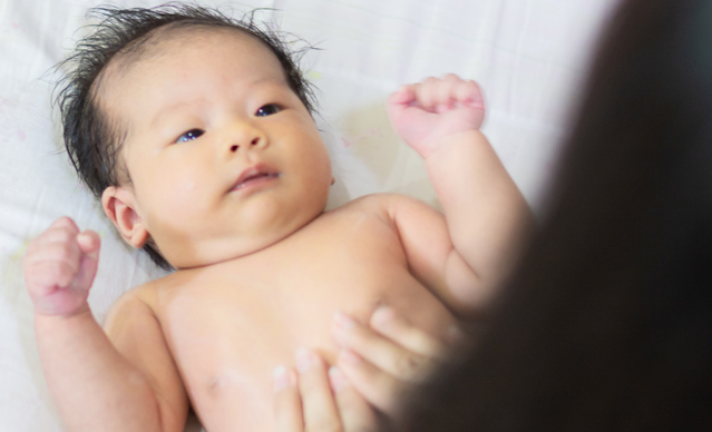 جرب خطواتنا في روتين وقت حمام الطفل ، لتعزيز تجربة اللمس بين الأم / الأب والطفل.